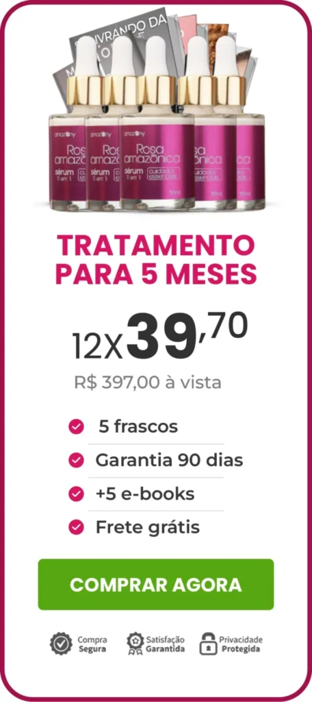Graças ao Ácido Hialurônico que traz moléculas de água para células da derme, o Sérum Rosa Amazônica age como preenchedor, suaviza e rejuvenesce todo seu organismo.